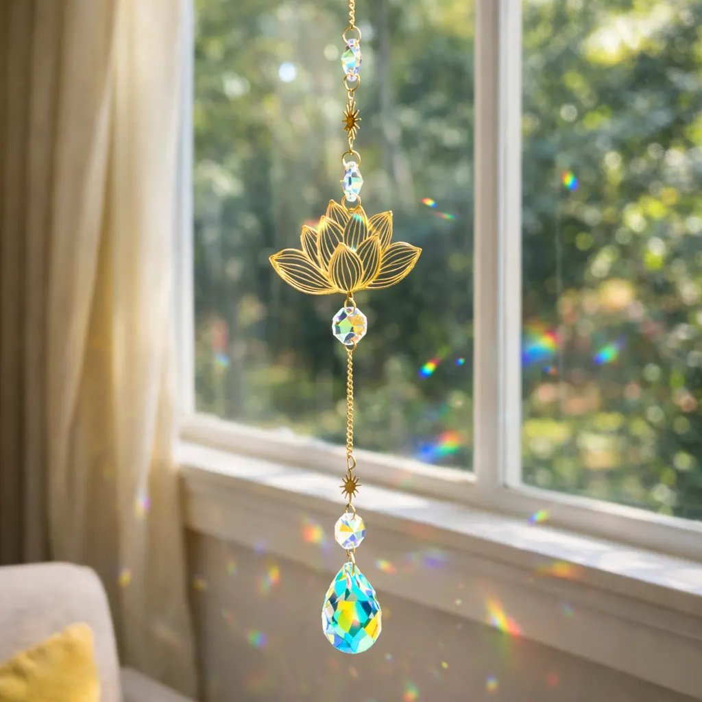 Each lotus crystal suncatcher is carefully assembled by hand, giving every piece its own unique character and charm. The golden lotus charm creates an elegant focal point while the faceted crystal beads enhance the light-catching effect.