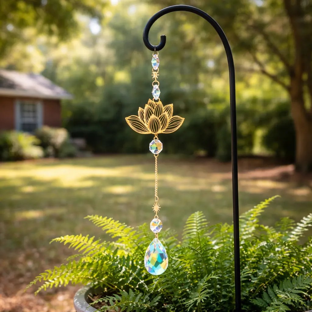 Whether hanging in a bright window or displayed outdoors in a garden planter, this lotus crystal suncatcher brings light, color, and handcrafted beauty into everyday spaces.